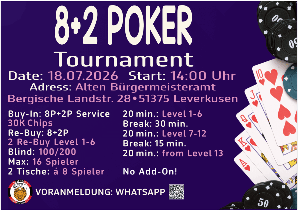 Wir möchten zunächst ein Pokerturnier für fortgeschrittene und professionelle Spieler veranstalten.